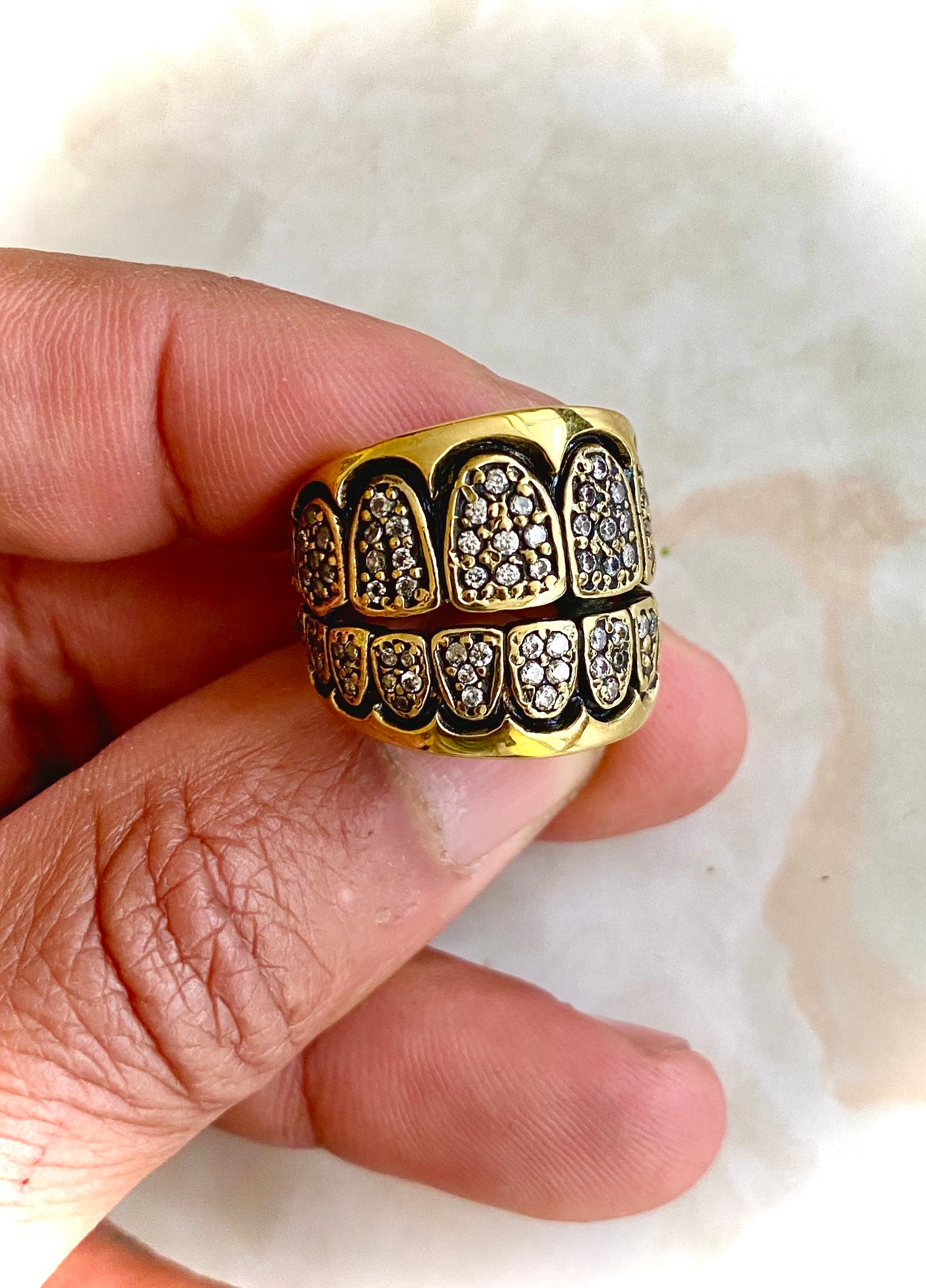 Sws Of London Design Gold Grill Cz Teeth Bling Ring Hip Hop Etsy Uk